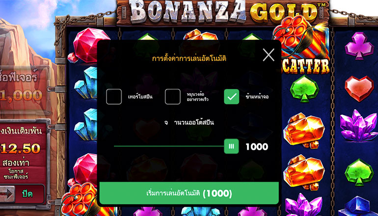 การเล่นแบบอัตโนมัติ เป็นการเล่นแบบต่อเนื่องหลายรอยติดต่อกัน โดนในการเล่นผู้เล่นสามารถตั้งค่าได้หลายอย่าง เช่นจำนวนเงินในการเล่น และจำนวนรอบในการเล่น ซึ่งผู้เล่นสามารถเลือกได้ตั้งแต่ 10 รอบเป็นต้นไป และสามารถเล่นอัตโนมัติได้สูงสุดถึง 1,000 รอบ ซึ่งสามารถเลือกได้ตามที่ต้องการได้เลย เมื่อตั้งค่าเรียบร้อบแล้ว ไห้ผู้เล่นกดเริ่มเกมเพียงครั้งเดียว เกมก็จะเล่นอัตโนมัติตามจำนวนรอบที่ตั้งค่าไว้ เมื่อถึงรอบที่ตั้งค่าไว้ เกมก็จะหยุดเอง และเงินจะถูกจ่ายเข้ากระเป๋าผู้เล่นในทันที