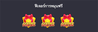 ![]() | ภาพสัญลักษณ์ Scatter เมื่อเกิดขึ้นตั้งแต่ 3 ภาพสัญลักษณ์ขึ้นไป ผู้เล่นจะได้เข้าไปเล่นในฟีเจอร์ฟรีสปิน |