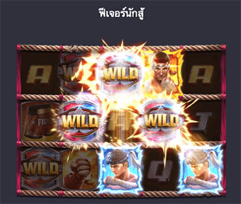 ฟีเจอร์นักสู้ ถือเป็นฟีเจอร์พิเศษของสล็อต Muay Thai Champion โดยเมื่อมีภาพสัญลักษณ์ แดง/น้ำเงิน อย่างละ 1 ตัวหรือมากกว่านั้น ปรากฏขึ้นมาบนเพลาผู้เล่นจะได้เข้าสู่ฟีเจอร์นักสู้ทันที ในระหว่างที่อยู่ในฟีเจอร์นักสู้ ภาพสัญลักนักสู้ต่างๆที่อยู่บนเพลาจะเปลี่ยนเป็นภาพสัญลักษณ์ WILD ขึ้นมาแทนที่ทันที และหากชนะในฟีเจอร์นี้ ผู้เล่นจะได้รับเงินรางวัลที่สูงมากเลยทีเดียว