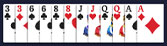 | ชุดเรียง 3 ถึง A | มีไพ่ที่เรียงกันตั้งแต่ 3 จนถึง A ในสีหรือดอกใดก็ได้ | |