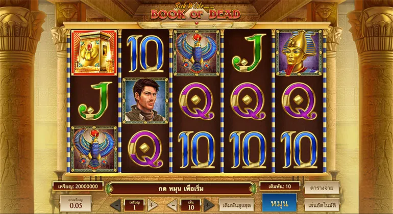 Book of Dead เป็นเกมสล็อตที่มาในธีมของหนังสือแห่งความตาย เป็นสล็อตในรูปแบบ 5 วงล้อ 3 แถว มีโอกาสได้รับรางวัลแจ็คพอตสะสม มีโอกาสได้รับโบนัสเงินสดสูงสุดถึง 250,000 บาท และโบนัสฟรีสปินอีก 10 รอบ มีอัตราการจ่ายสูงสุดถึง x1,000 เท่าเลยทีเดียว